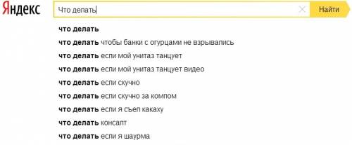 | Как яндекс отвечает на запрос «Что делать»: что делать если мой унитаз танцует, что делать если я шаурма и другие варианты... | |