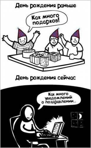 | День Рождения раньше - как много подарков! Сейчас - как много уведомлений поздравлений. | |
