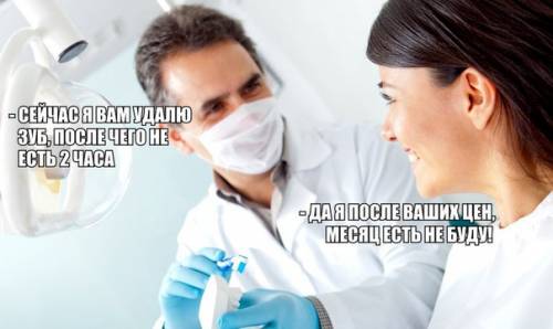 | - Сейчас я вам удалю зуб, после чего не есть 2 часа. - Да я после ваших цен, месяц есть не буду! | |