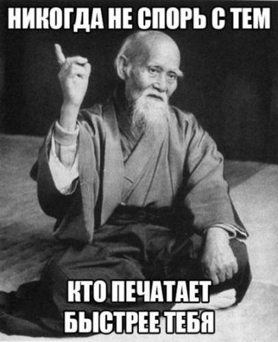 | Никогда не спорь с тем, кто печатает быстрее тебя. | |