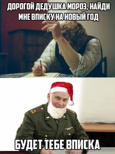 | - Дорогой Дедушка Мороз, найди мне вписку на Новый Год. - Будет тебе вписка... | |