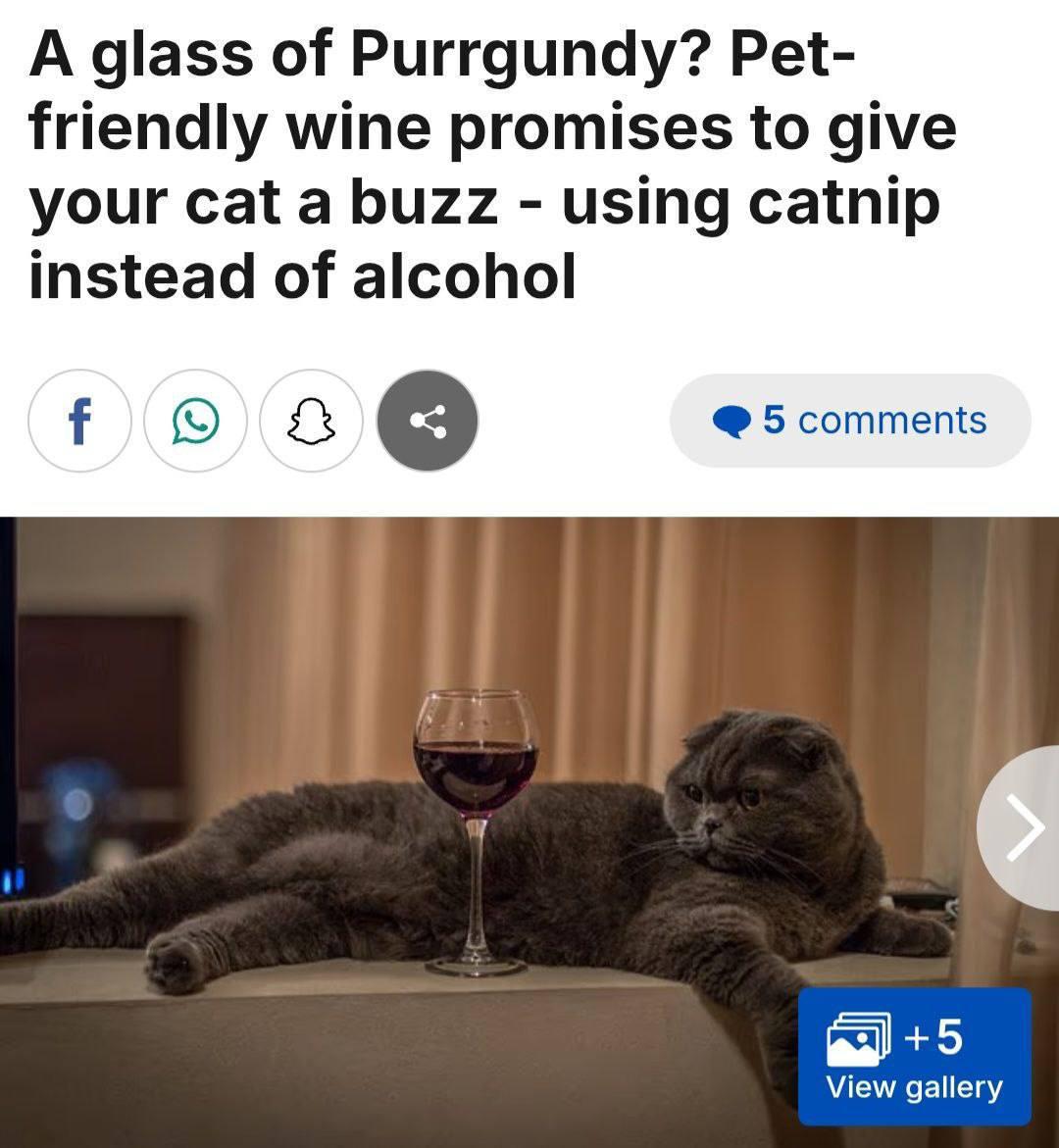 В Новой Зеландии создали вино для кошек. Вместо алкоголя в напитке содержится кошачья мята, которая безопасна для животных и даже помогает им снять стресс.